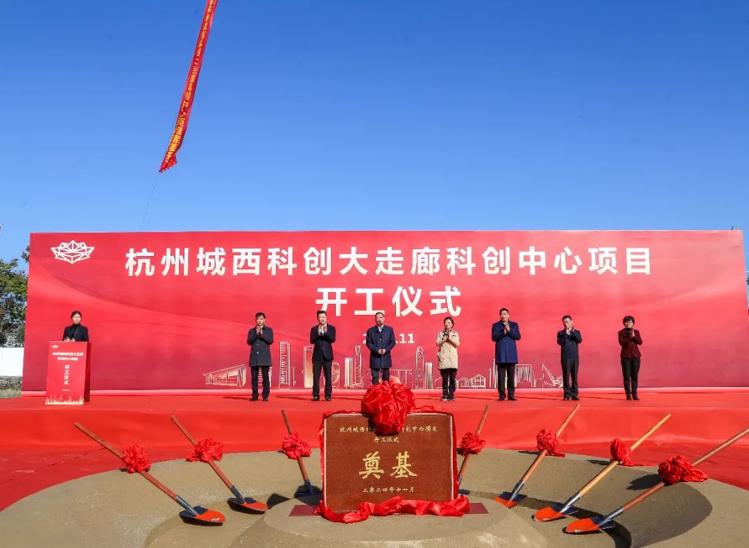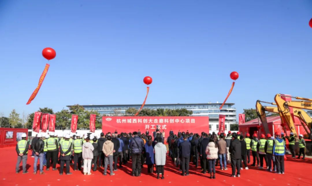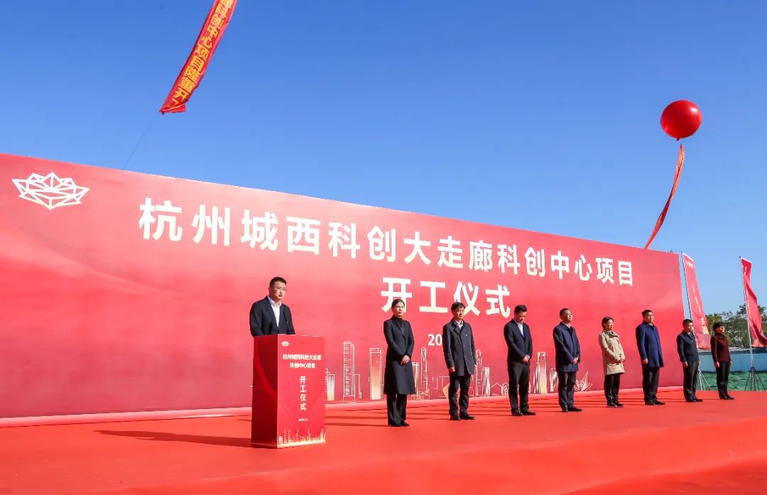 市政府党组成员、城西科创大走廊管委会主任孔春浩出席仪式并宣布项目开工,大走廊管委会、西湖区政府、紫金港科技城管理局、未来科技城管理局、青山湖科技城管理局、市金投集团、城西科投公司等相关领导和部门负责人以及项目股东单位、施工单位、监理单位代表等领导、嘉宾,一同见证了城西科创大走廊开启建设帷幕!